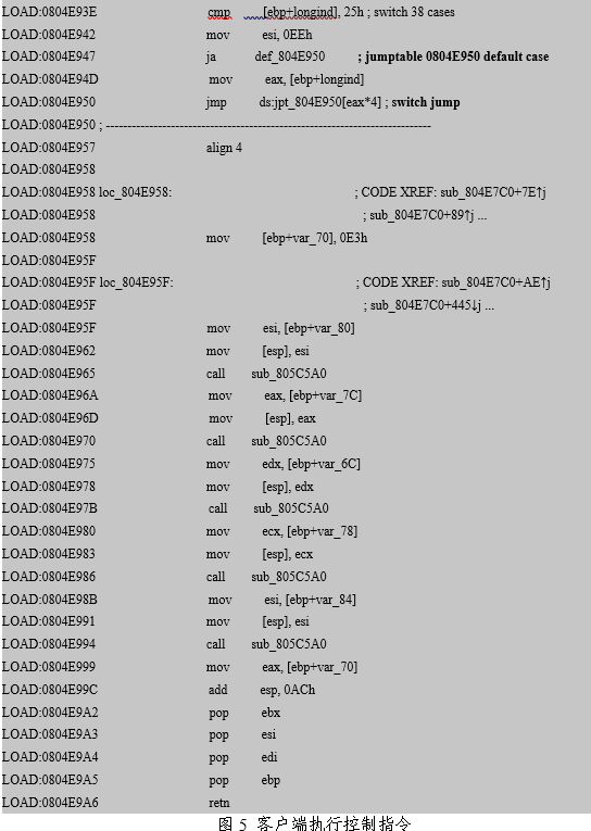 從分析結果看,客户端被植入並配置相應規則後,可以在網絡設備後台靜默運行,攻擊者可以使用服務器端進行控制也可以直接登錄到網絡設備後台進行命令控制。如表2、圖4、圖5和圖6所示。