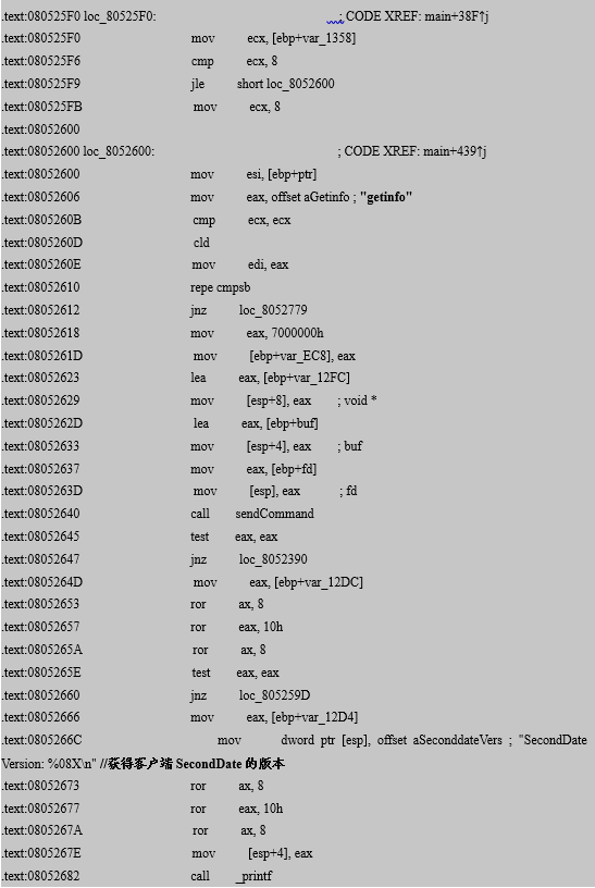 該“間諜”軟件針對路由器、防火牆等網絡設備平台,SecondDate支持分佈式部署,由服務器端程序和客户端程序構成,攻擊者事先通過其他方式將客户端程序植入目標網絡設備,然後使用服務器端程序對客户端進行命令控制。其主要工作流程和技術分析結果如下: