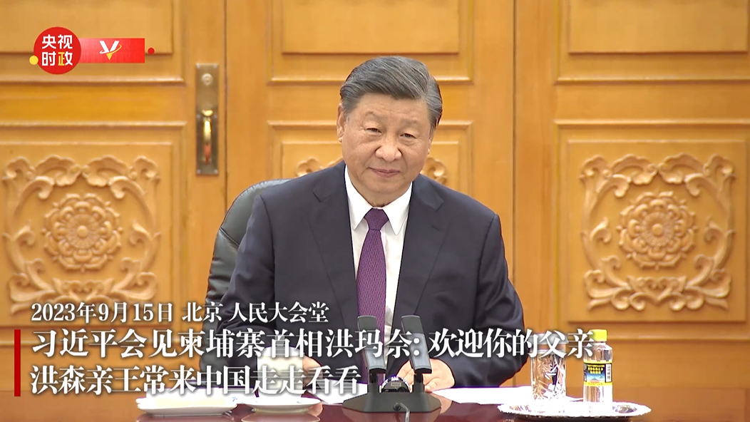 習近平指出,你的父親洪森親王為中柬友好事業作出了歷史性貢獻,請轉達我對他的誠摯問候,歡迎他常來中國走走看看。今年春天,你陪同你父親訪華,我同他一道開啓建設高質量、高水平、高標準中柬命運共同體的新時代。你這次在金秋九月來訪,相信將是一次“收穫之旅”,推動中柬命運共同體建設走深走實。