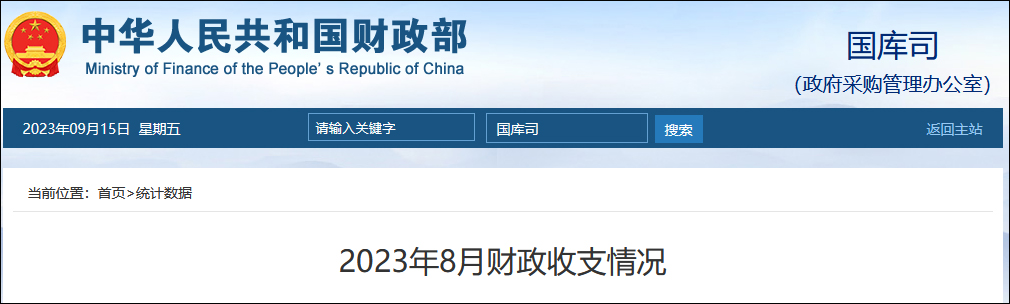 財政部:1-8月全國一般公共預算收入151796億元,同比增長10%