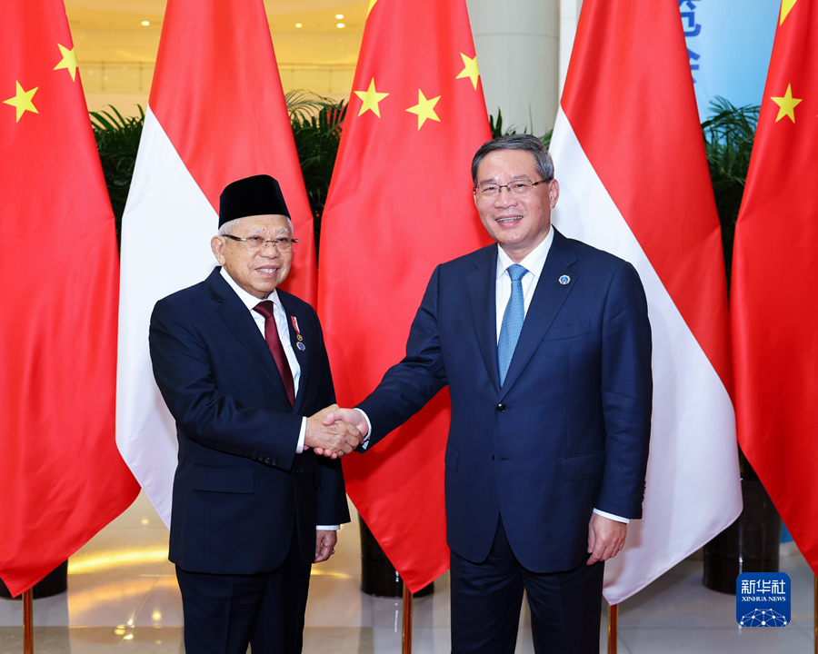 國務院總理李強9月16日下午在廣西南寧會見來華出席第二十屆中國-東盟博覽會的印度尼西亞副總統馬魯夫。