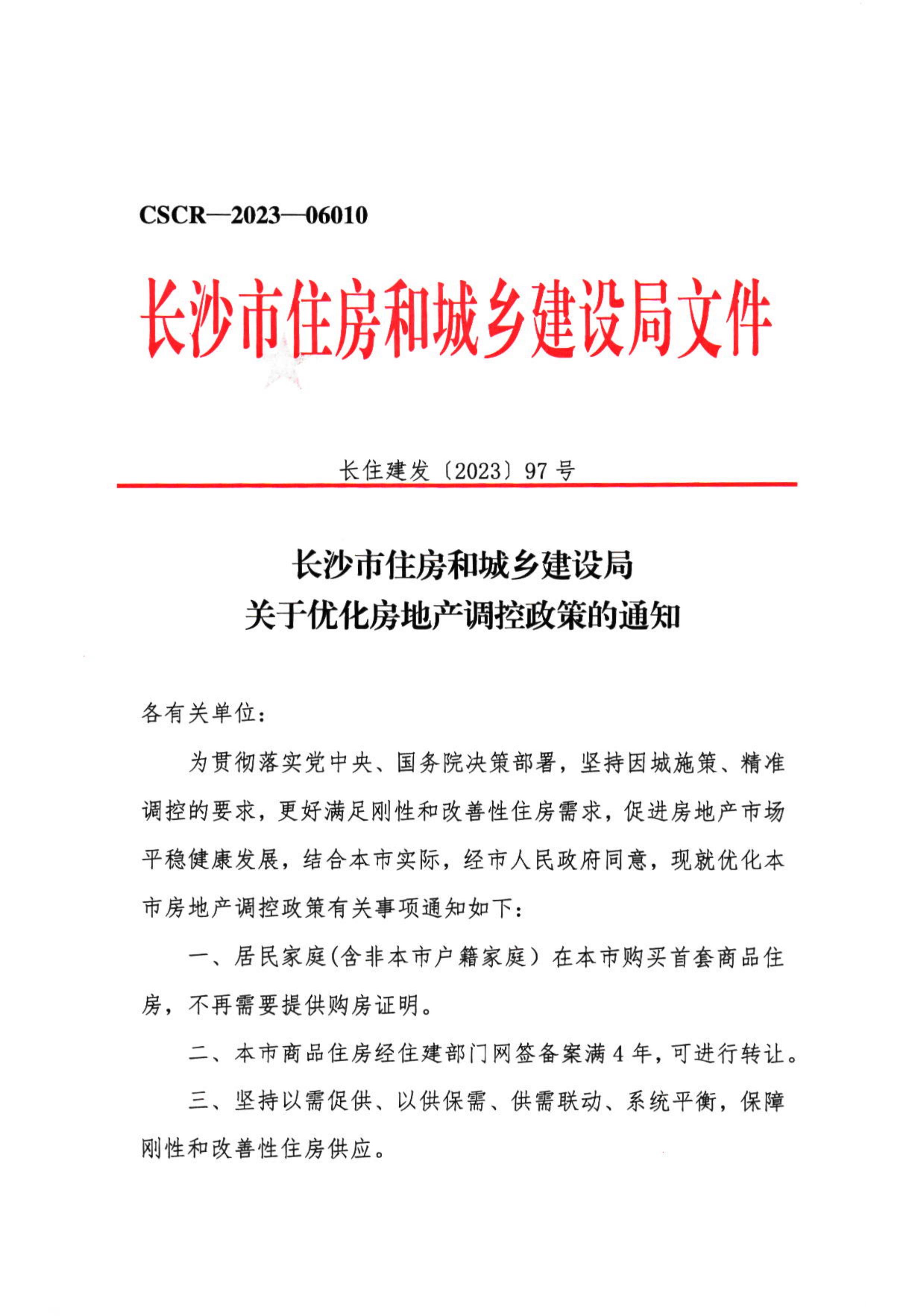 9月22日,長沙市住房和城鄉建設局網站發佈《關於優化房地產調控政策的通知》。原文如下: