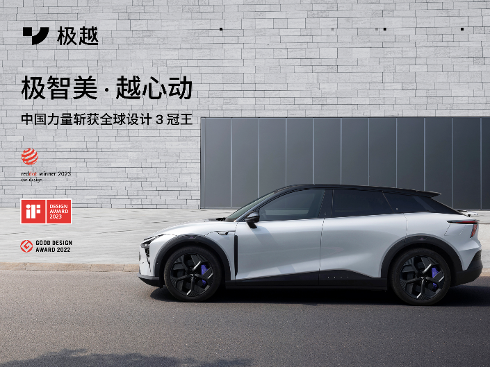 在“機器人”美學的加持下,近日極越01相繼斬獲了德國紅點、iF和日本GOOD DESIGN三項設計大獎,成為國內首個同時獲得全球頂級設計大獎“三冠王”的車型,也成為業內唯一整車設計同時獲得三項國際大獎的品牌。