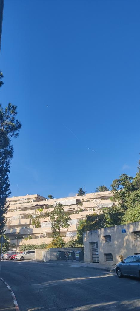 耶路撒冷在最近幾年衝突中受到的火箭彈影響都較為有限。然而在此次衝突中,耶路撒冷從早上到中午也響起了數輪的防空警報。只不過在我早上漫步的東耶路撒冷,還未見到有人為響應防空警報前往庇護所。相反還有許多人駐足街頭,拿出手機抬頭尋找、拍攝着火箭彈與攔截導彈在空中繪成的蹤跡。空中不時傳來的悶響與街上照常生活的人們並不衝突,似乎這才是本地該有的常態。