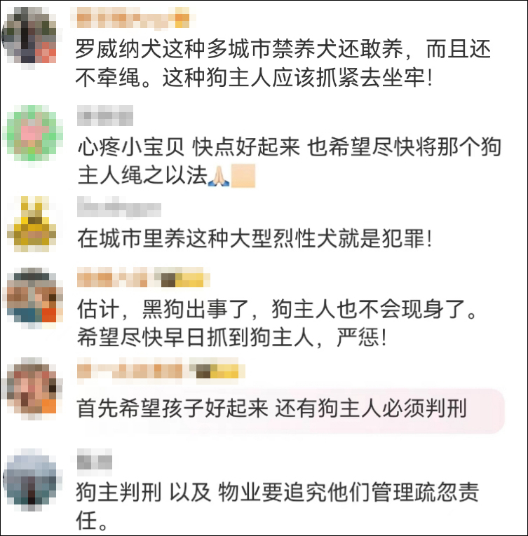 不少網友表示心疼被咬傷的小女孩,並要求嚴懲涉事狗的主人,也有網友認為物業管理存在疏忽,應該被追責。