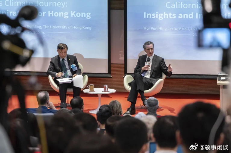 香港《南華早報》23日報道稱,紐森當天做客香港大學,同校領導討論如何應對氣候變化和促進經濟增長。