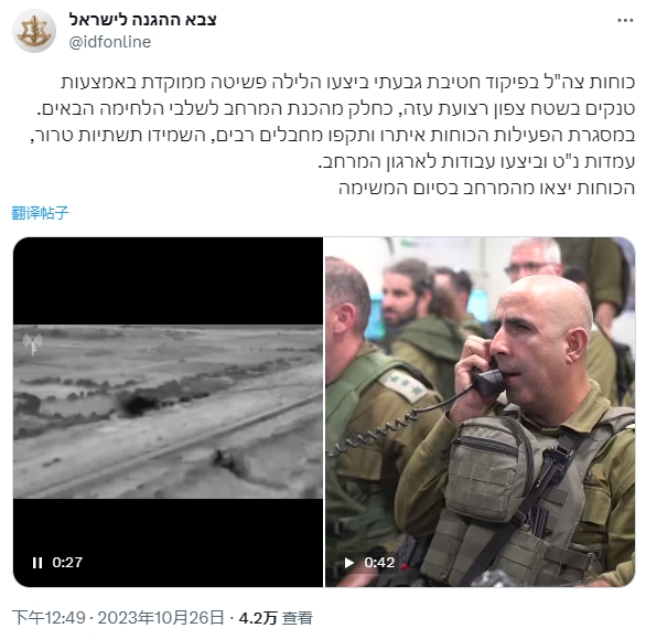 以色列軍方於26日凌晨發佈的聲明與視頻 圖片截取自X平台