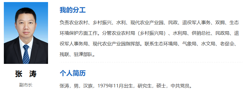 大皖新聞記者通過溧陽市人民政府官網查詢到,張濤,1979年11月出生,研究生,碩士,中共黨員,現任溧陽市副市長。