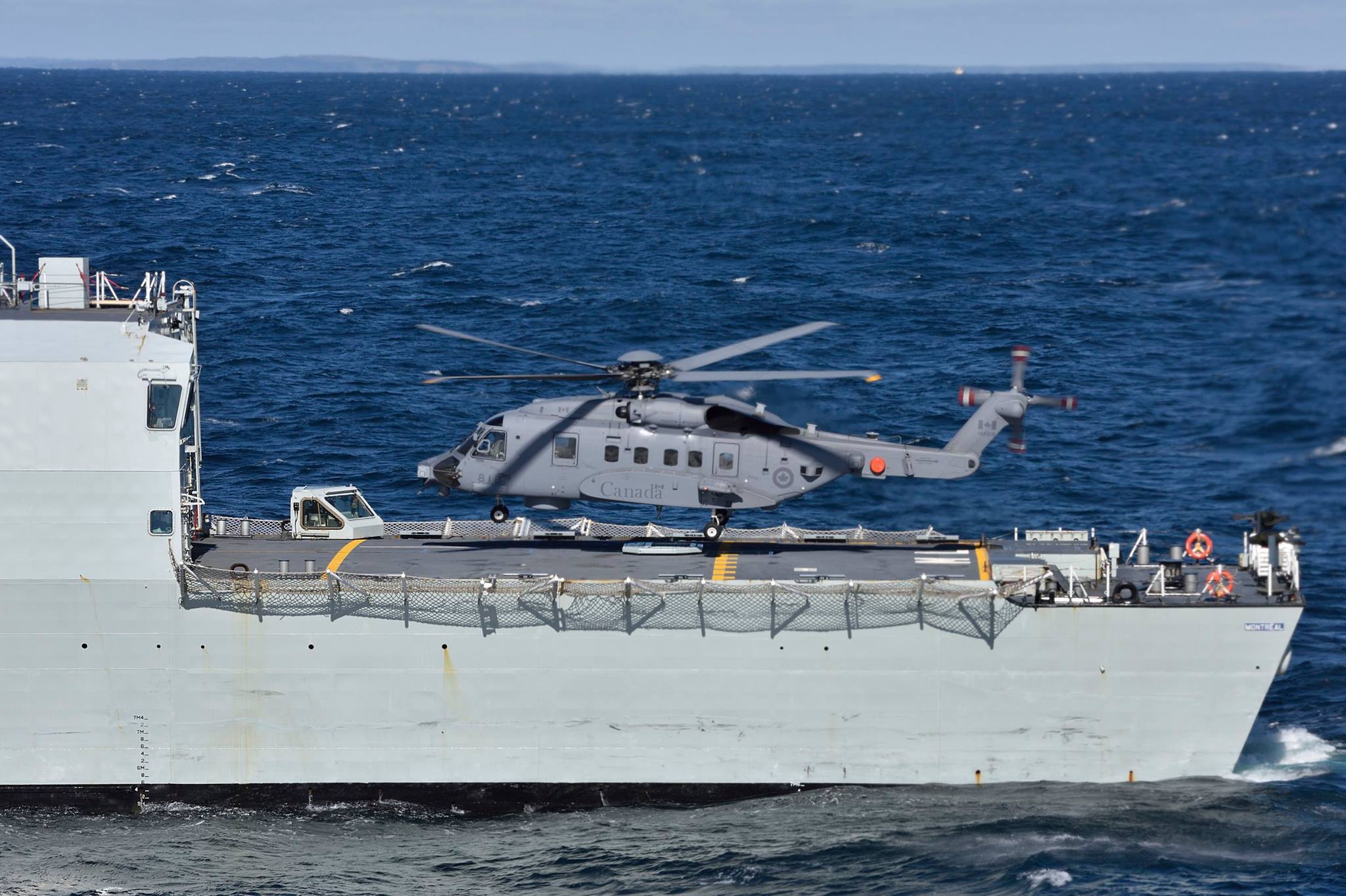 (資料圖)正在FFH-336“蒙特利爾”號(“渥太華”號同型艦)上着艦的加拿大空軍CH-148“旋風”直升機 圖片來源:加拿大空軍