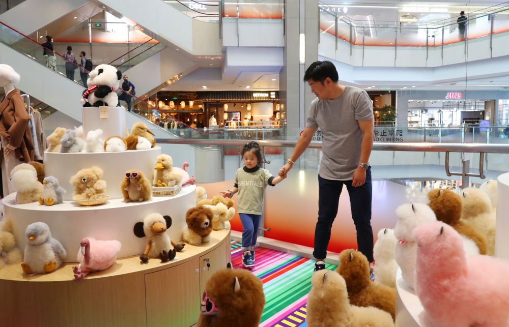 2023年11月2日,顧客在温暖駝品牌專櫃內選購。連續六年參加進博會的秘魯羊駝製品品牌温暖駝在上海市中心商場開設了專櫃。新華社記者 方喆 攝