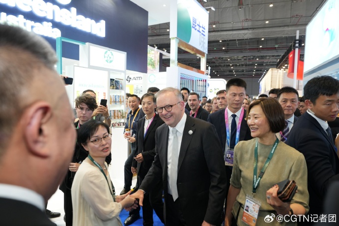 澳大利亞總理逛進博會 2023-11-05 澳大利亞總理阿爾巴尼斯在進博會首日來到食品與農產品展區,同澳大利亞參展商交流。在5日上午舉行的進博會開幕式上,阿爾巴尼斯表示,很高興看到許多澳大利亞企業參加進博會這一重要活動,希望進博會進一步加強中澳聯繫。 (CGTN記者 吳彬 安坤)