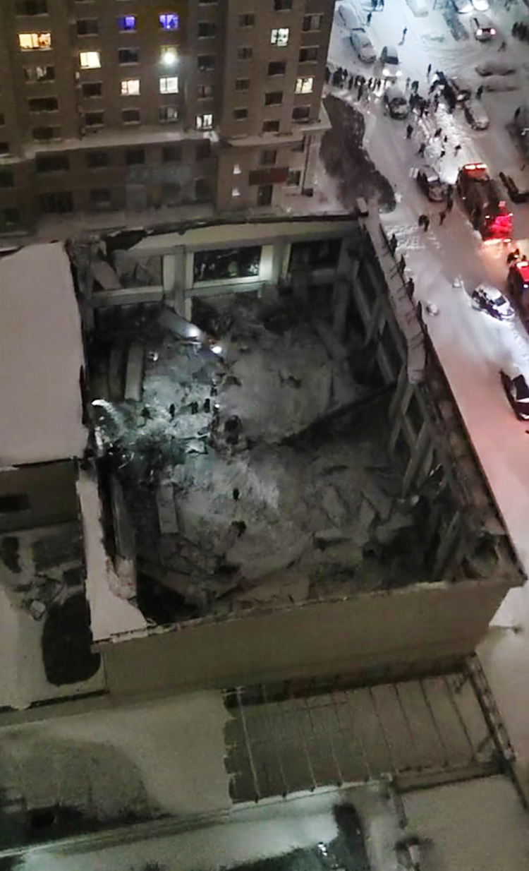 事發當晚,體育館坍塌現場。
