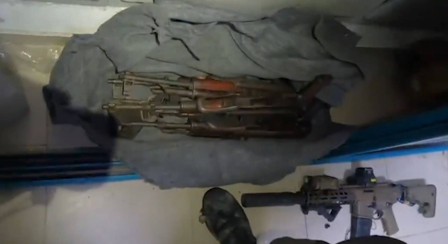以軍公佈搜查到的武器 圖源:以色列國防軍