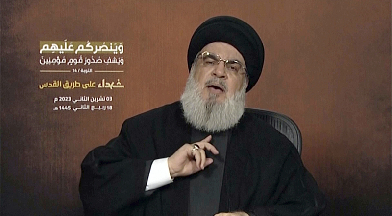 當地時間11月3日,黎巴嫩真主黨領導人納斯魯拉發表講話 圖自視覺中國