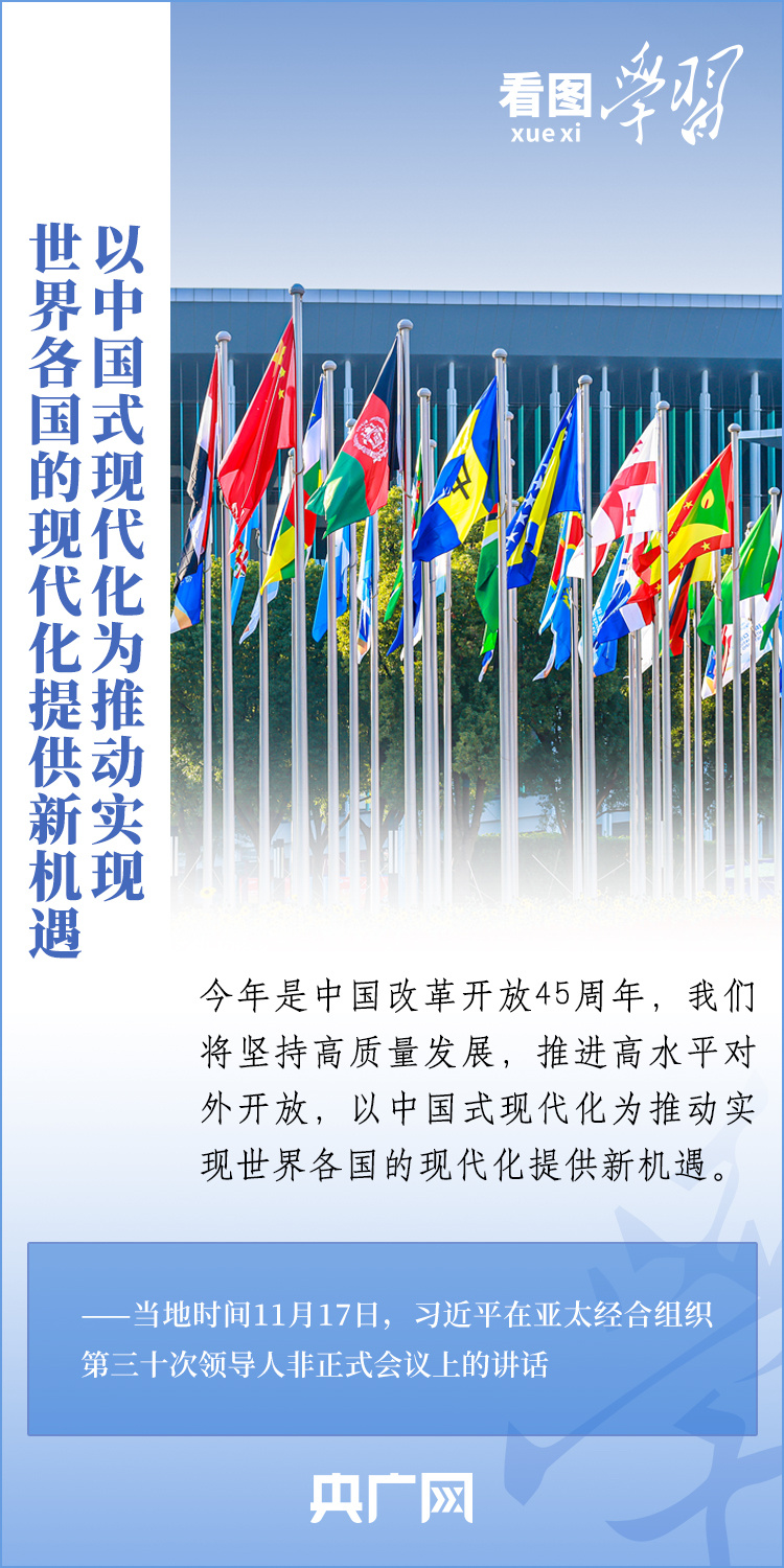 當地時間11月17日上午,亞太經合組織第三十次領導人非正式會議在美國舊金山舉行。國家主席習近平出席會議並發表題為《堅守初心 團結合作 攜手共促亞太高質量增長》的重要講話。習主席在講話中全面闡述了中國對深化亞太合作、促進地區和世界經濟增長的重要主張,以“四個堅持”提出多項務實舉措,希望同各方一道努力,共同打造亞太下一個“黃金三十年”。一起來學習!