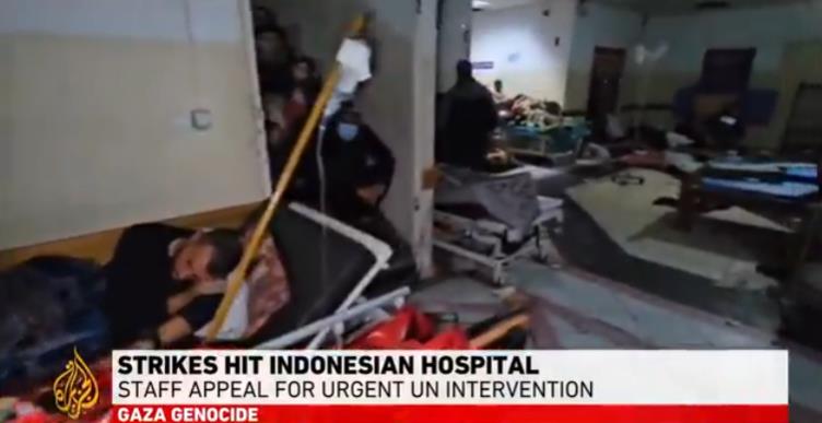 加沙地帶衞生部門發言人阿什拉夫·庫德拉當地時間20日説,印尼醫院的情況“屬災難性”,院內工作人員則“堅持要留下來治療傷員”。半島電視台就此擔心以軍會重複之前在希法醫院的做法。土耳其阿納多盧通訊社引述目擊者稱,以色列的炮擊導致醫院的發電機停止工作,陷入斷電。