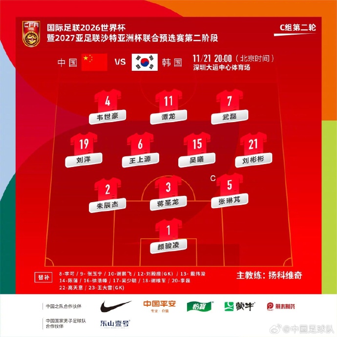 雙方的年齡對比上,國足平均年齡28.7歲,12人30歲以上;韓國平均年齡28.7歲,11人30歲以上。