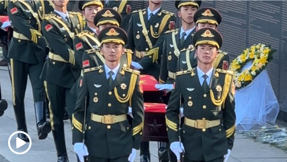 視頻:英雄回家 | 禮兵踢着無聲的禮步 護送志願軍烈士棺槨緩緩行進來源:中國新聞網