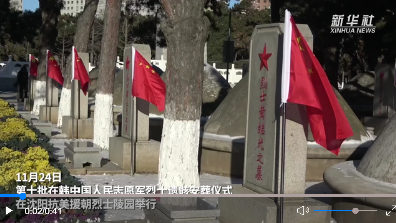 新華社瀋陽11月24日電 題:英魂安息 家國安寧——第十批在韓中國人民志願軍烈士遺骸安葬儀式側記