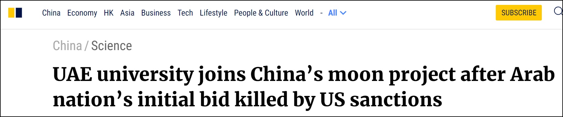 然而,到了今年3月,《南華早報》援引消息兩名消息人士的話説,美國的技術轉讓限制導致阿聯酋參與中國登月任務的計劃擱淺。這些消息人士提到了美國1976年頒佈的《國際武器貿易條例》,稱該條例禁止用中國火箭發射任何美國製造的部件,哪怕是最常見的部件。