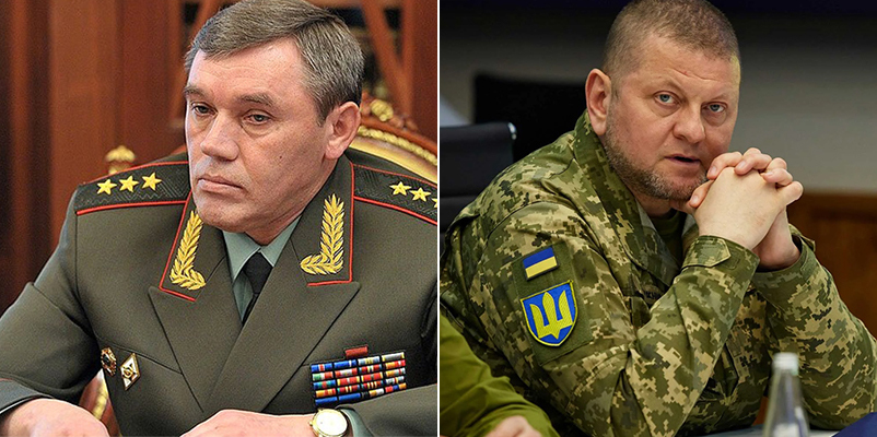 俄羅斯武裝力量總參謀長瓦列裏·格拉西莫夫(左)和烏克蘭最高軍事指揮官瓦列裏·扎盧日內