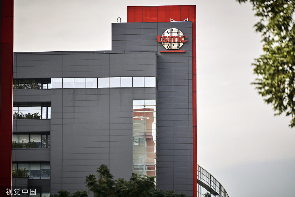2023年10月17日,台灣新竹科技園大樓頂上的台積電公司標誌 圖片來源:視覺中國