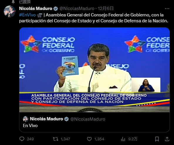 委內瑞拉總統馬杜羅5日發表全國電視講話,推文截圖