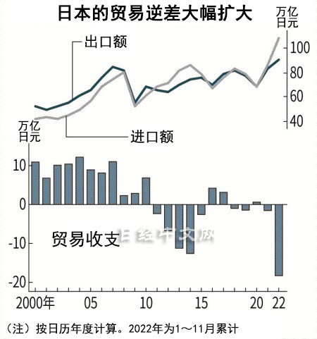 日本的貿易逆差大幅增大(圖源:日經中文網)
