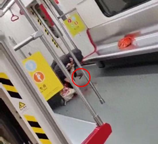 網傳視頻顯示,兩名成年男子扭打在地鐵車廂中,白衣男子身上多處血跡,黑衣男子手持一把小型刀具。旁邊有一名小孩一直哭着大喊“爸爸,爸爸”,其中一名扭打的男子説“保護小孩子”。有工作人員上前將小孩帶離。