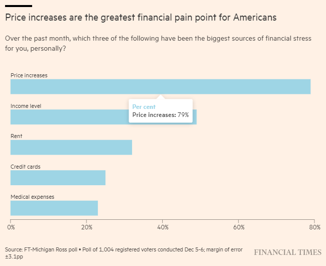 在受訪者看來,高通膨是他們最擔心的問題。不過,相較上個月的調查結果,人們對美國經濟的樂觀程度有所提高。