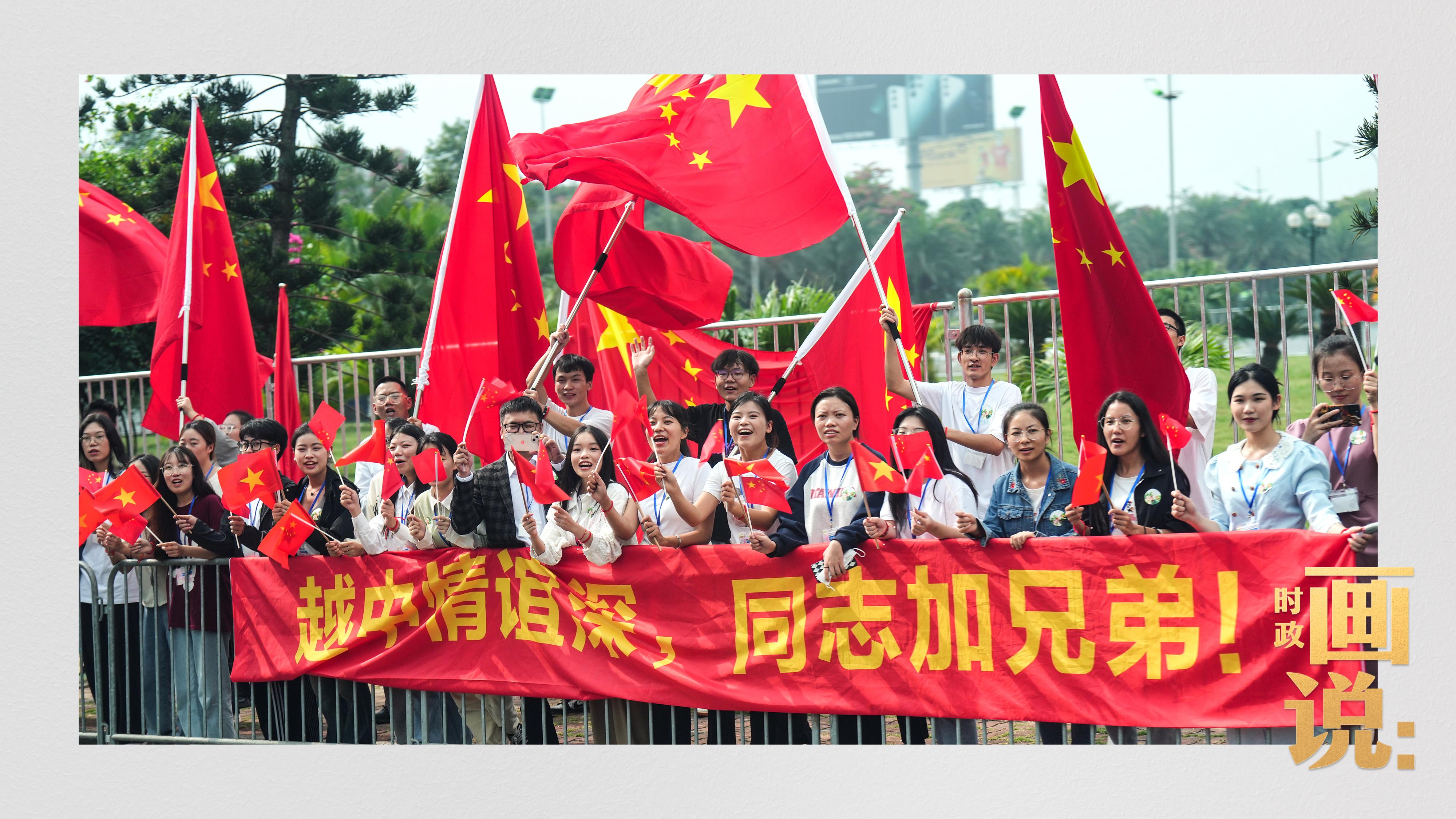 時政畫説丨迎賓·河內 guancha 2023-12-13 點擊圖片查看視頻 當地時間12月12日,中共中央總書記、國家主席習近平乘專機抵達河內,開始對越南社會主義共和國進行國事訪問。 中國與越南 山水相連 文化相通 理想相同 命運與共 “同志加兄弟”的傳統友誼 在新時代 擘畫嶄新篇章!