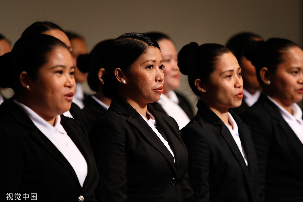 2017年3月21日,日本東京,人力派遣公司為新招募的菲律賓工人舉辦歡迎儀式 圖源:視覺中國