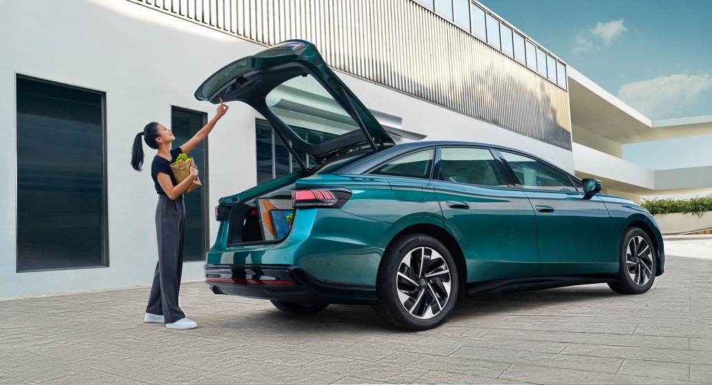 在造型設計上,ID.7 VIZZION車型採用了“自由之形”的設計理念,讓美學與功能實用也可兼得。更流暢的車身線條帶來0.23cd的更小風阻,同級少有的超大掀背設計帶來1036mm的後備箱開口、521L超大後備箱空間及1629L後備箱延展空間。