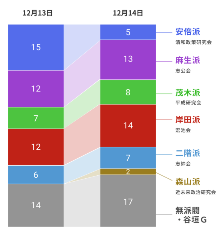 圖1:岸田內閣改組後自民黨各派系分佈情況變化圖(12月14日)