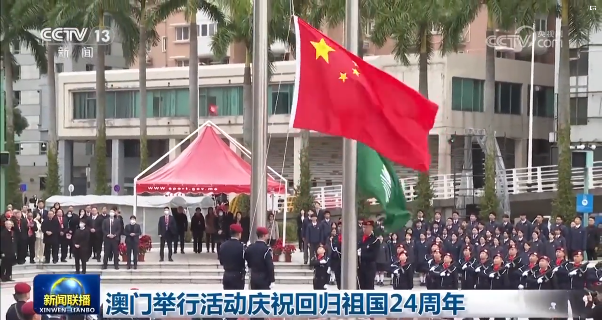 今天(12月20日)上午,澳門特別行政區政府在金蓮花廣場舉行升旗儀式,慶祝迴歸祖國24週年。澳門特區政府主要官員、中央駐澳機構負責人、社會各界人士等在現場觀禮。