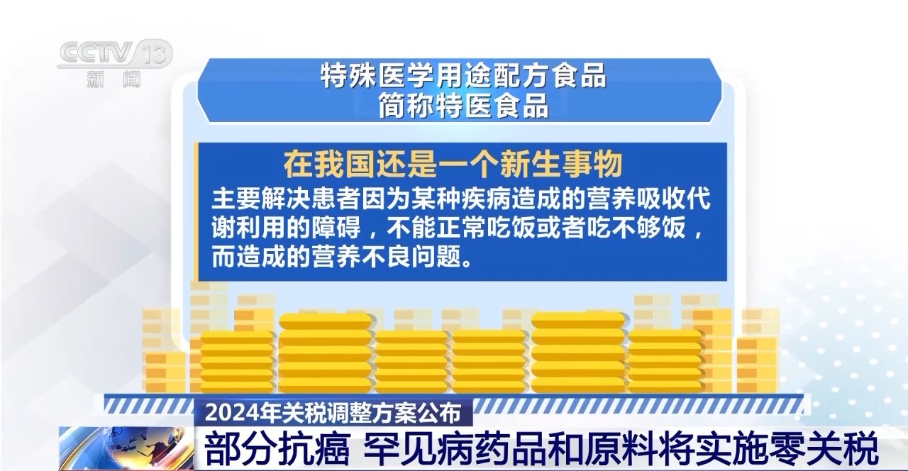 除了這些藥品和原料,2024年,我國對特殊醫學用途配方食品實施了零關税。這類食品是為了滿足進食受限、消化吸收障礙、代謝紊亂或特定疾病狀態人羣對營養素或膳食的特殊需要,專門加工配置而成的配方食品。