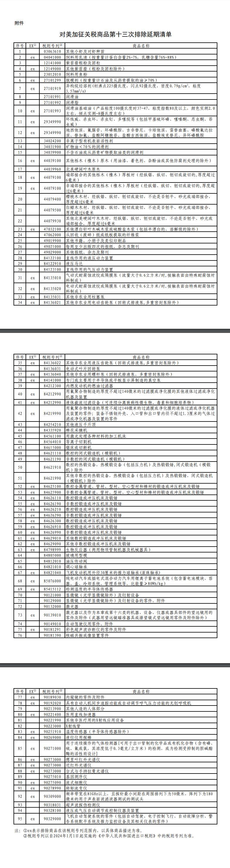 自2024年1月1日至2024年7月31日,對附件所列商品,繼續不加徵我為反制美301措施所加徵的關税。