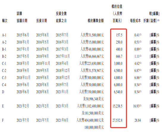 這也是圓心科技獲得騰訊等眾多投資者的原因之一。從估值來看,申報稿顯示,圓心科技2015年6月A-1輪時估值才1.58億元,而到2021年7月F輪時,其估值已達275.33億元。