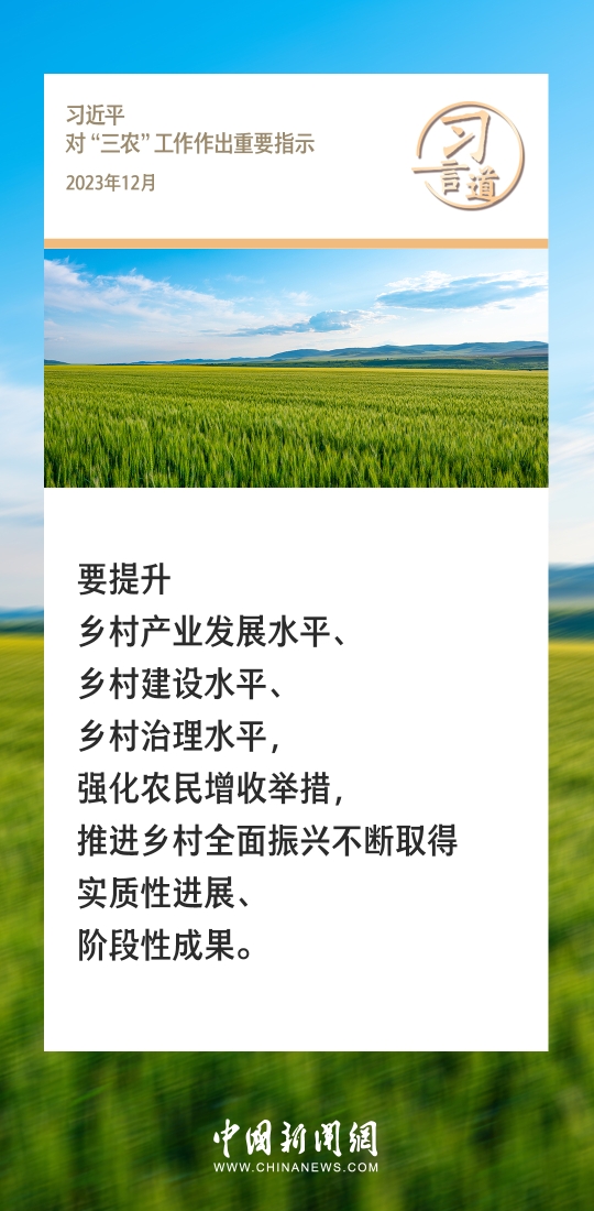 習言道|説一千、道一萬,增加農民收入是關鍵 guancha 2023-12-24 中國新聞網 農為邦本,本固邦寧。習近平總書記多次在不同場合就“三農”工作發表重要講話、作出重要部署,始終堅持把解決好“三農”問題作為全黨工作的重中之重。