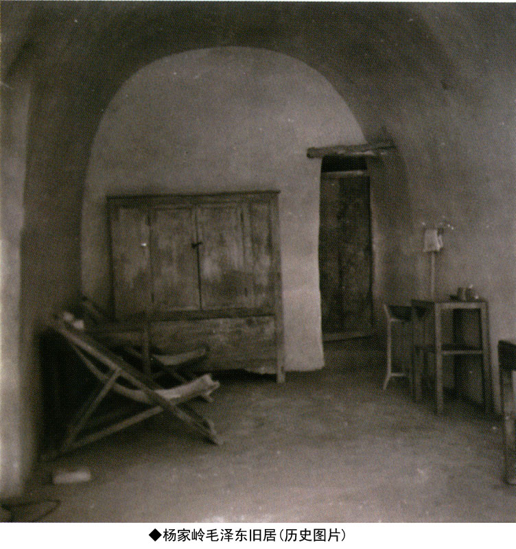 我發現毛澤東仍舊住在窯洞裏,不過陳設比較改進和現代化了。他住的是三間,一間書房、一間寢室、一間客房。牆上抹了白灰,地下鋪了磚,略有一點裝飾。但除此之外,還是很儉樸。我發現毛仍然只有兩套制服和一件棉大衣。除此以外,他真是身無長物。
