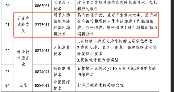 兩部門公佈新版《目錄》:禁止出口人體基因編輯技術,範圍縮窄至生殖細胞