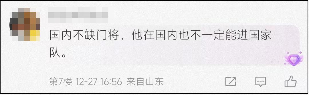 也有觀點認為,在門將這個位置,國內的競爭非常激烈,不一定能進中國國家隊。