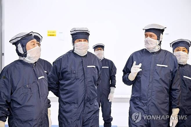 當地時間12月12日,在荷蘭阿斯麥公司(ASML)總部,韓國總統尹錫悦(左起)、荷蘭國王威廉·亞歷山大走訪無塵室,聽取首席商務官兼管理委員會成員克里斯托弗·富凱(Christophe Fouquet )的説明。 韓聯社/聯合採訪團