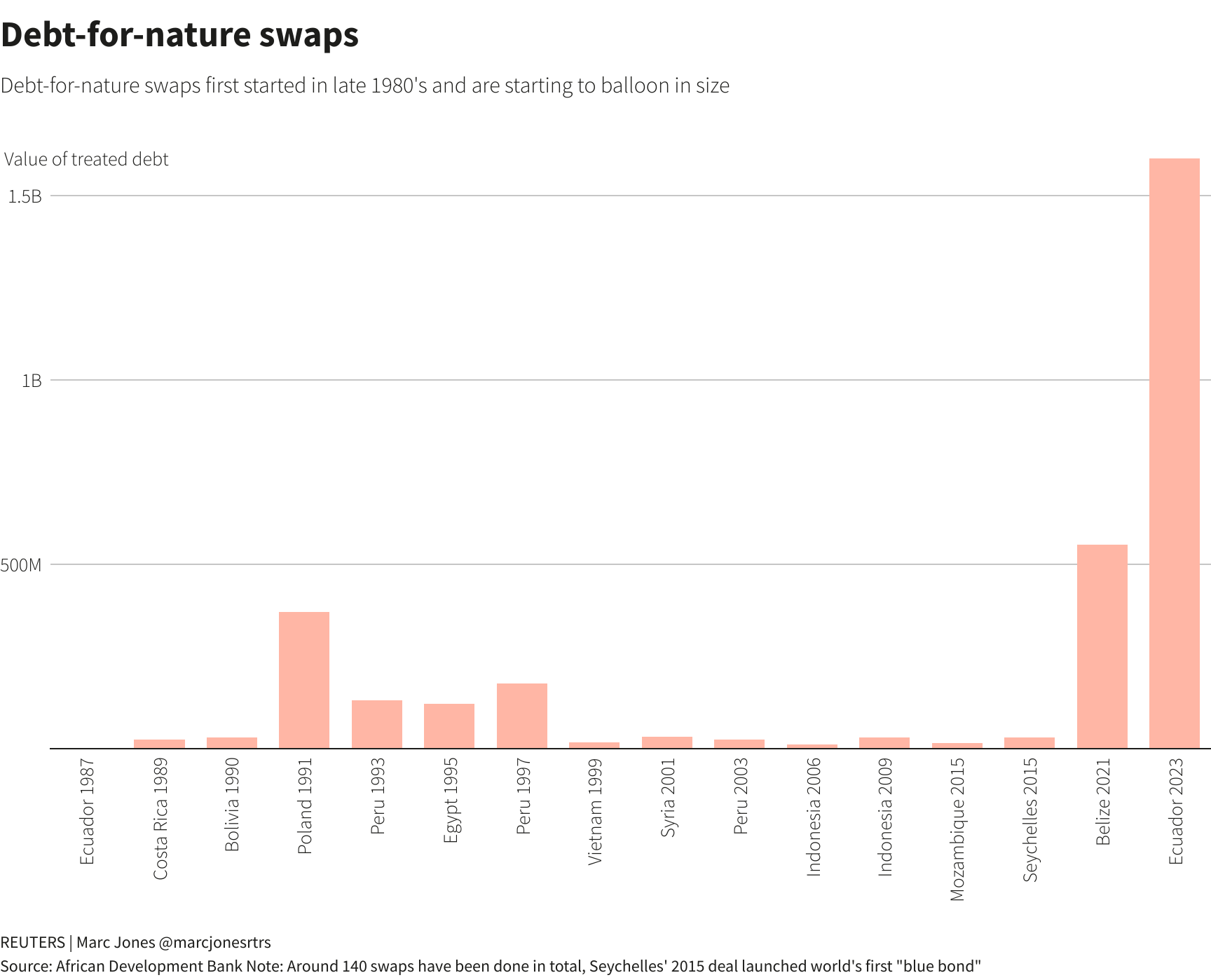 債務換自然交易幫助國家削減債務,以換取保護承諾,吸引越來越多的關注,尤其是在厄瓜多爾上個月達成創紀錄的16億美元交易以保護加拉帕戈斯羣島之後。