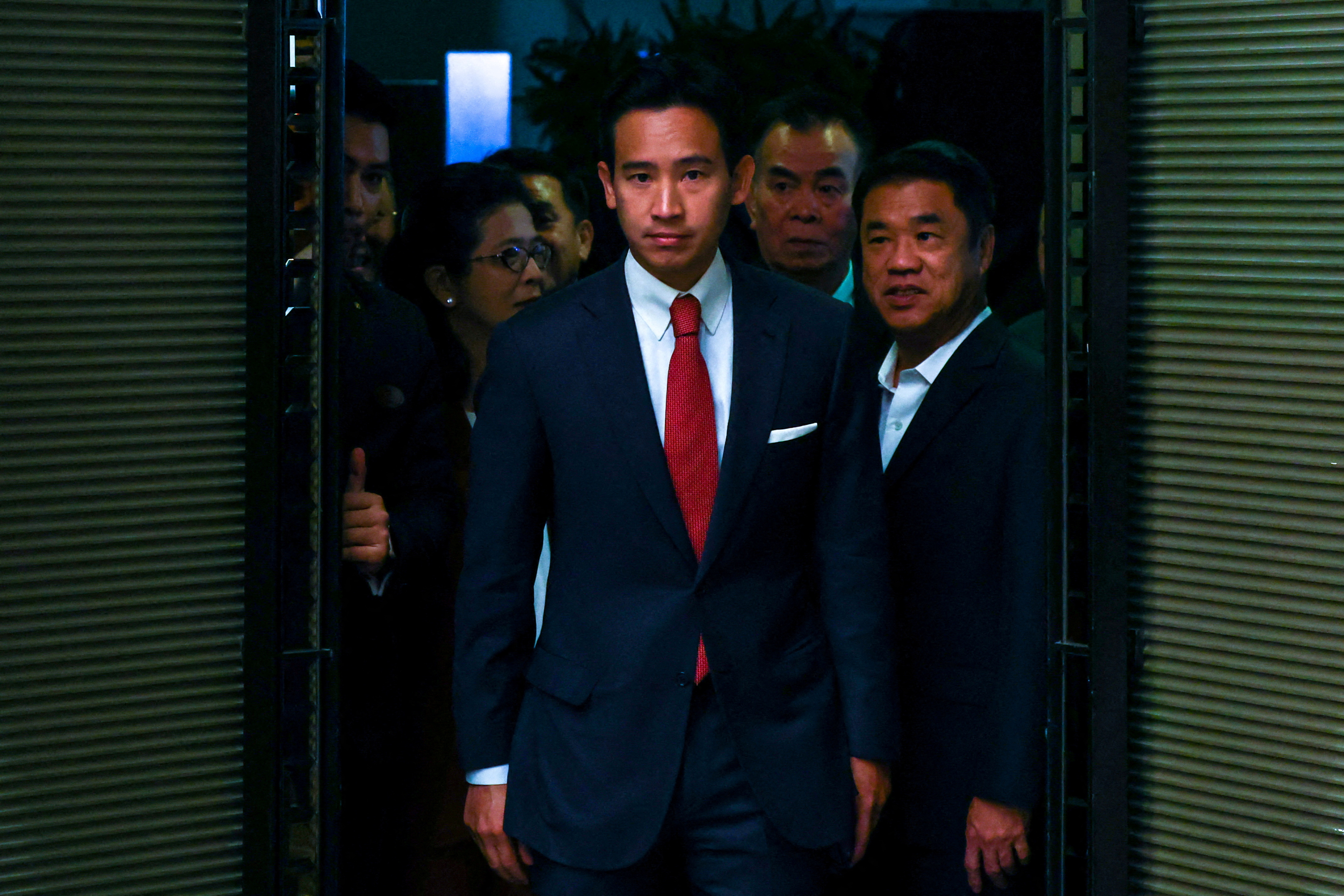 前進黨領袖皮塔·林加羅恩拉特與聯盟黨領袖在曼谷與聯盟夥伴會晤後舉行新聞發佈會,泰國,2023年5月18日。路透社/Athit Perawongmetha/文件照片