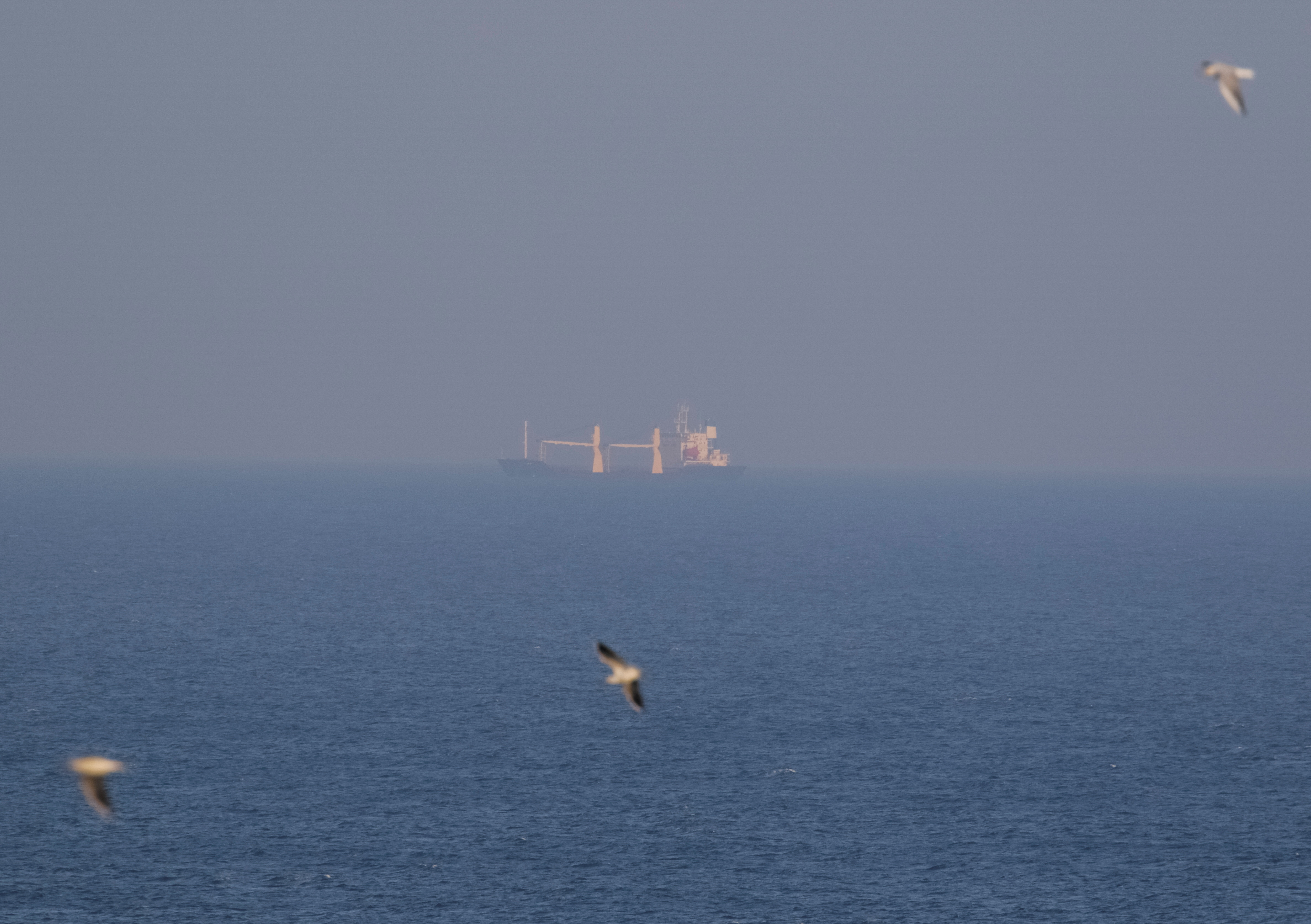 一艘裝載烏克蘭穀物的貨船出現在黑海上,俄羅斯對烏克蘭的襲擊正在進行,靠近烏克蘭港口敖德薩,2022年11月2日。路透社/謝爾希·斯莫利恩採夫/文件照片