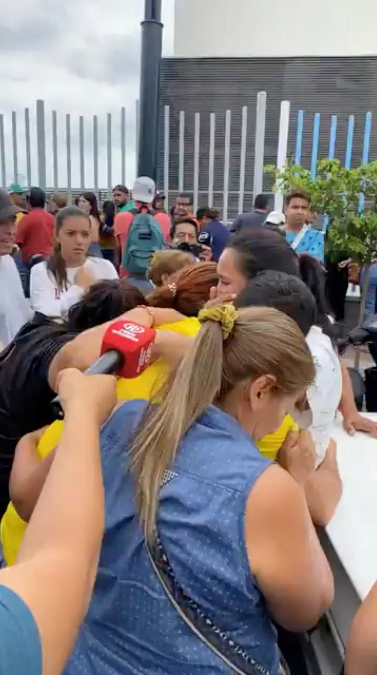厄瓜多爾太平洋港口城市曼塔的羅德里格斯·薩姆布拉諾醫院外,人們在厄瓜多爾曼塔市市長阿古斯丁·因特里亞戈被槍殺後做出反應,這是2023年7月23日在厄瓜多爾曼塔拍攝的社交媒體視頻截圖。摩特克里斯蒂·阿爾法羅/路透社