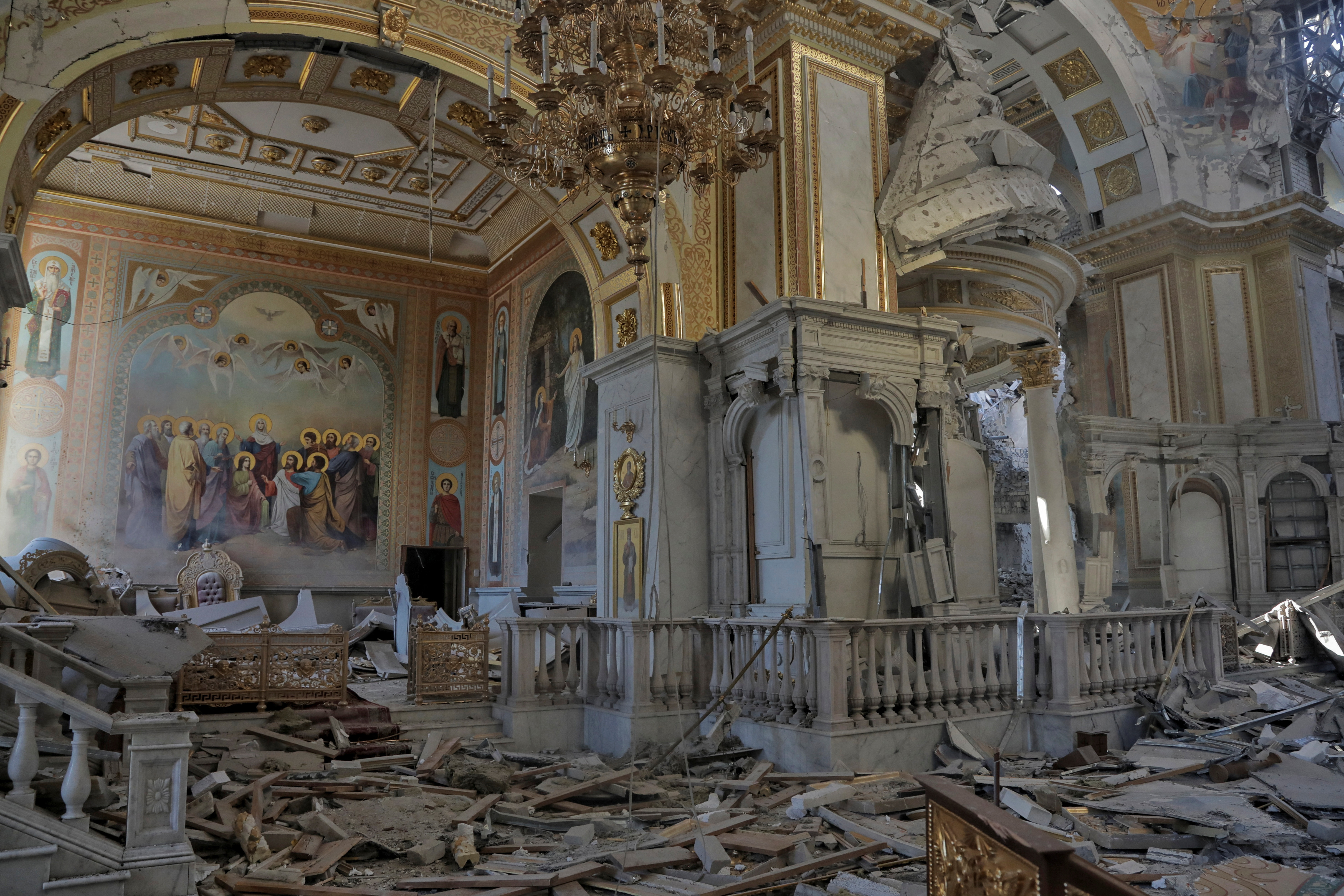 烏克蘭敖德薩的變容大教堂於7月23日遭到破壞。路透社/Nina Liashonok 攝