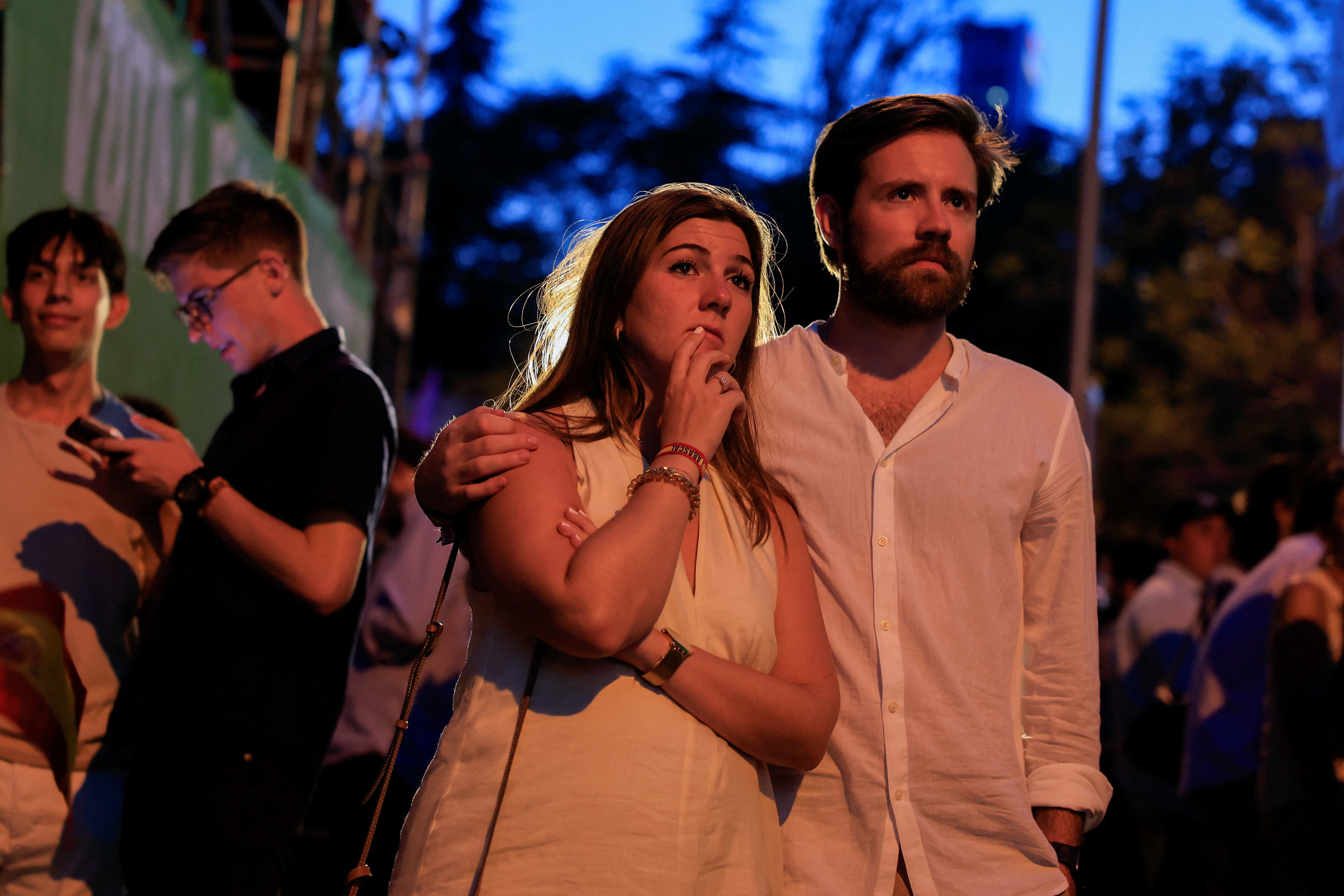 週日晚上,隨着人民黨和社會黨之間的差距仍然保持得很小,人民黨總部外的歡呼氣氛變得焦慮起來。