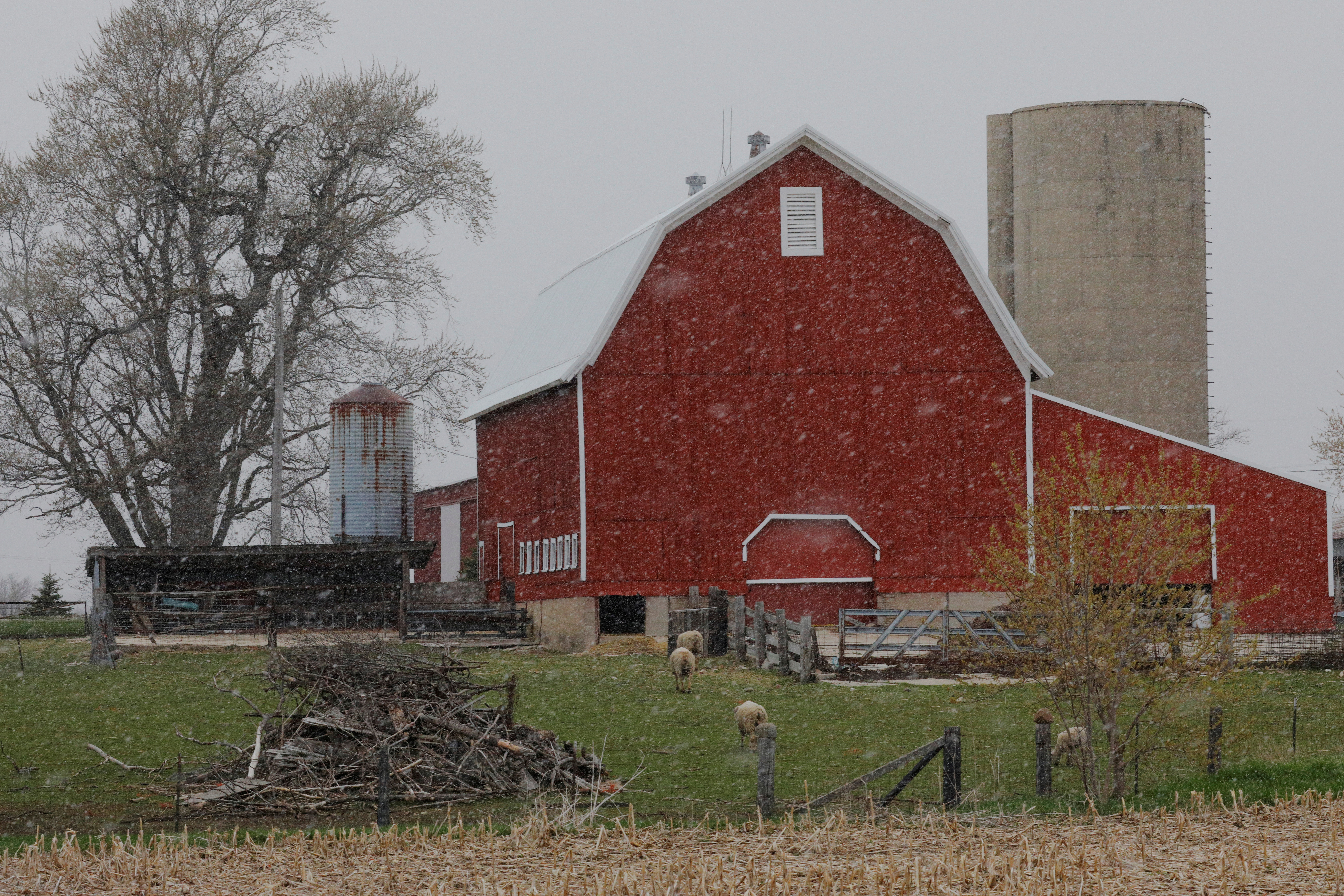 雪花飄落在美國威斯康星州聯合格羅夫鎮的農場上,2019年4月27日。路透社/Brian Snyder/文件照片